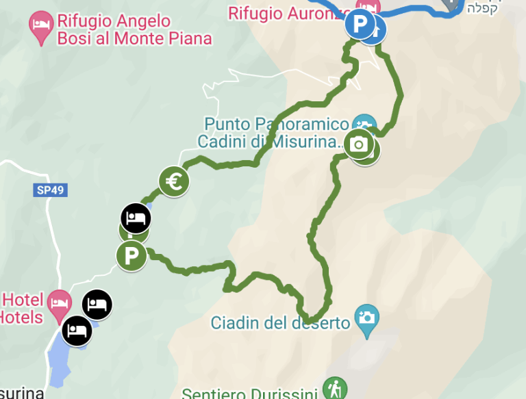 המסלול לנקודת התצפית מתחיל ליד אגם מיסורינה, סמוך לפארק הלאומי של הרי הדולומיטים, ונמשך בדרך נוחה יחסית, המובילה אל עבר נוף פנורמי עוצר נשימה. ההגעה אל התצפית אינה דורשת מאמץ רב, אך מומלץ להצטייד בנעליים נוחות, מצלמה ומשקפת כדי ליהנות באופן מלא מכל מה שהמקום מציע.