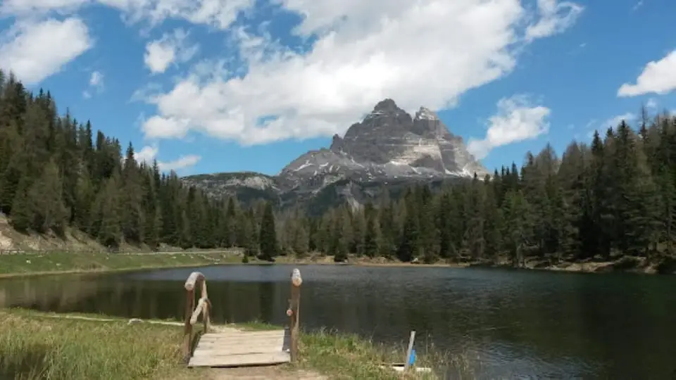 אחד הסודות היפים ביותר שמעטים מכירים: מהחוף הדרומי של האגם, בדיוק ליד ספסלי העץ והתמרור הצהוב – נשקף נוף מרהיב אל שלושת הפסגות המפורסמות ביותר בדולומיטים – טרה צ'ימה די לאברדו (Tre Cime di Lavaredo). ביום בהיר, ניתן לראות את הצוקים המרשימים עומדים להם בזקיפות ברקע – והתחושה היא של גלויה חיה.