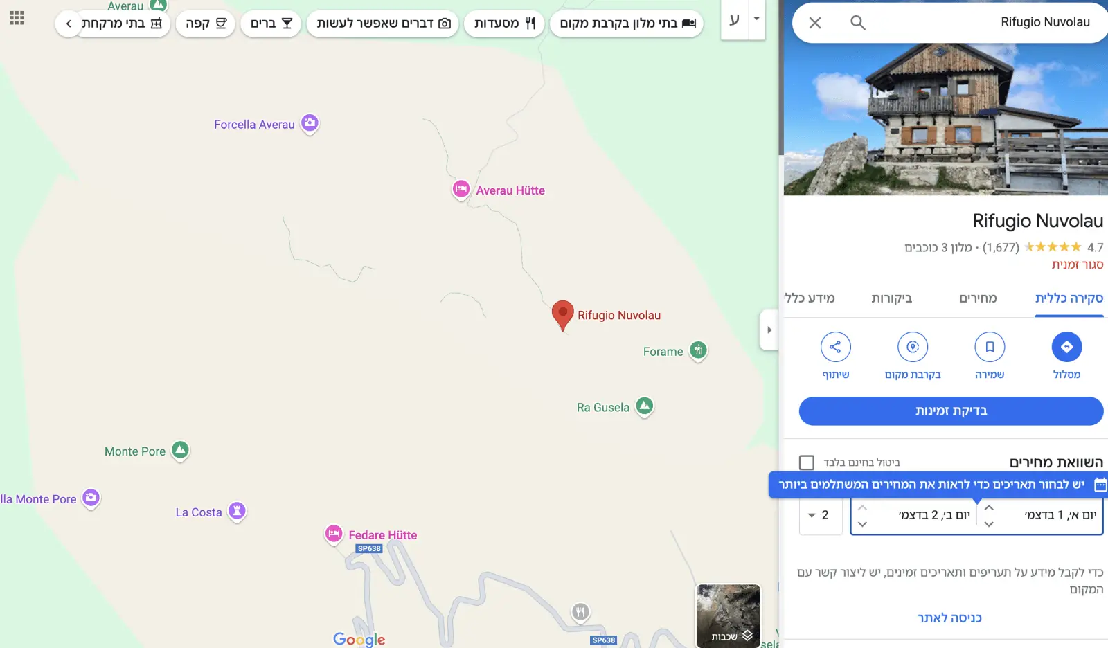 ריפוג'יו נובולאו ממוקמת במיקום אידיאלי לתצפית על האתרים הבולטים בדולומיטים: